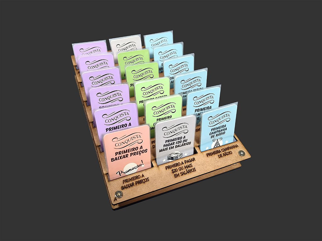 - 1 placa superior com os nomes das cartas gravados abaixo dos espaços previstos para elas.